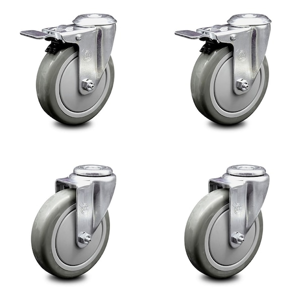 5 Inch Gray Polyurethane Swivel Bolt Hole Caster Set with 2 Total Lock Brake