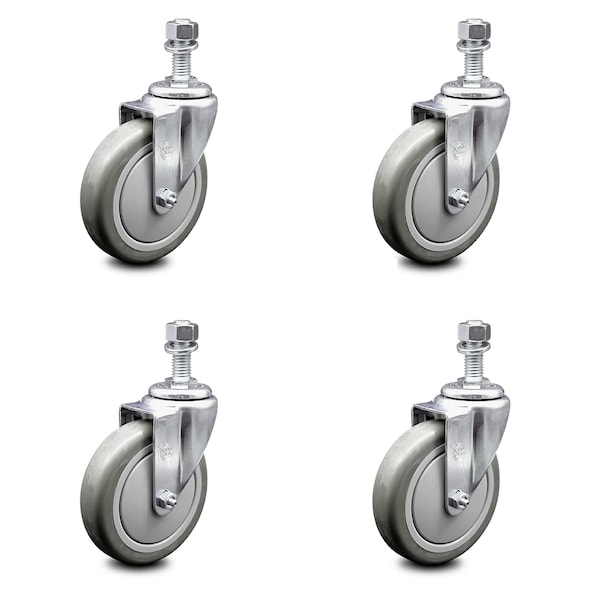 5 Inch Gray Polyurethane Wheel Swivel 12mm Threaded Stem Caster Set SCC