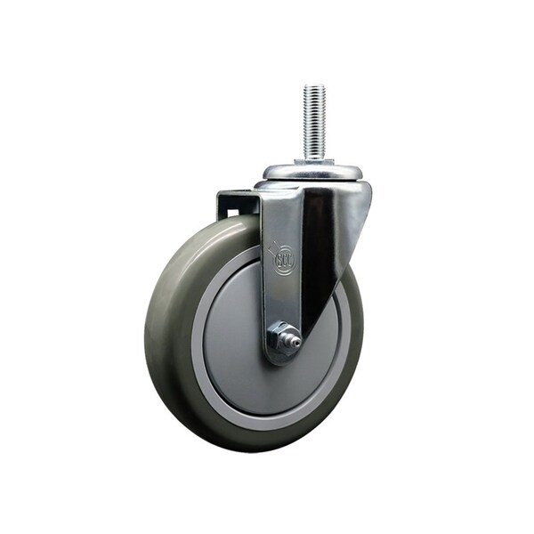 Listing is for one 1 Service Caster Series 20 swivel caster with a 5 diameter by 114 wide gray polyurethane wheel and a 34 threaded stem capable of supporting 350 lbscaster When searching for a reliable and durable solution to your caster needs, consider Service Casters Series 20 threaded stem polyurethane casters The Service Caster Series 20 is ideal for light and medium duty material handling, carts, equipment, and shop projects The bolt hole can accept a bolt or a customized stem, allowing for any type of mounting requirementThe zinc plated finish provides durability under any condition, while the nonmarking, nonmarring polyurethane wheels perform especially well on hard surfaces such as concrete, tile, and wood All rolling on a finely crafted ball bearing design that will keep you moving forward