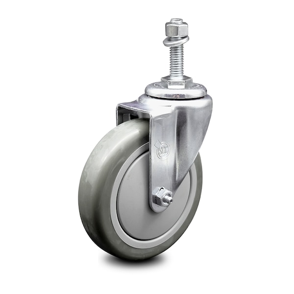 5 Inch Gray Polyurethane Wheel Swivel 3/8 Inch Threaded Stem Caster SCC