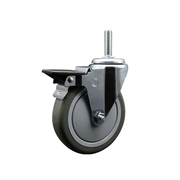 Listing is for one 1 Service Caster Series 20 swivel caster with a 5 diameter by 114 wide gray polyurethane wheel and a 58 threaded stem with brake capable of supporting 350 lbscaster When searching for a reliable and durable solution to your caster needs, consider Service Casters Series 20 threaded stem polyurethane casters The Service Caster Series 20 is ideal for light and medium duty material handling, carts, equipment, and shop projects The bolt hole can accept a bolt or a customized stem, allowing for any type of mounting requirementThe zinc plated finish provides durability under any condition, while the nonmarking, nonmarring polyurethane wheels perform especially well on hard surfaces such as concrete, tile, and wood All rolling on a finely crafted ball bearing design that will keep you moving forward