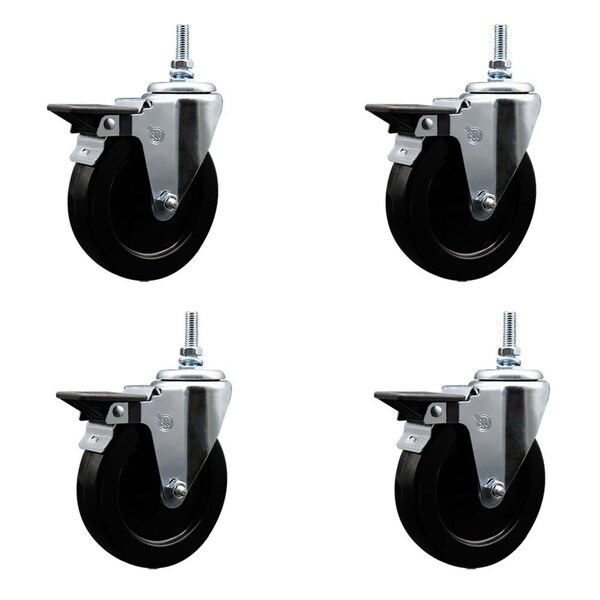 Listing is for a set of four 4 Service Caster Series 20 swivel casters, four 4 swivel 12 threaded stem casters with posi lock brakes, 5 diameter by 114 wide hard rubber wheels Supports a total weight of 1,200lbs 300 lbsper caster When searching for a reliable and durable solution to your caster needs, consider Service Casters Series 20 hard rubber casters The Service Caster Series 20 is ideal for light and medium duty material handling, carts, equipment, and shop projects The hard rubber wheels not only provide higher load capacities and impact resistance than comparable wheels, but are also resistant to most chemicals and oils Mounting options include top plate, bolt hole and standard and metric threaded stem sizes All rolling on a finely crafted ball bearing design and zinc plated finish that provides durability under any condition and keeps you safely moving forward