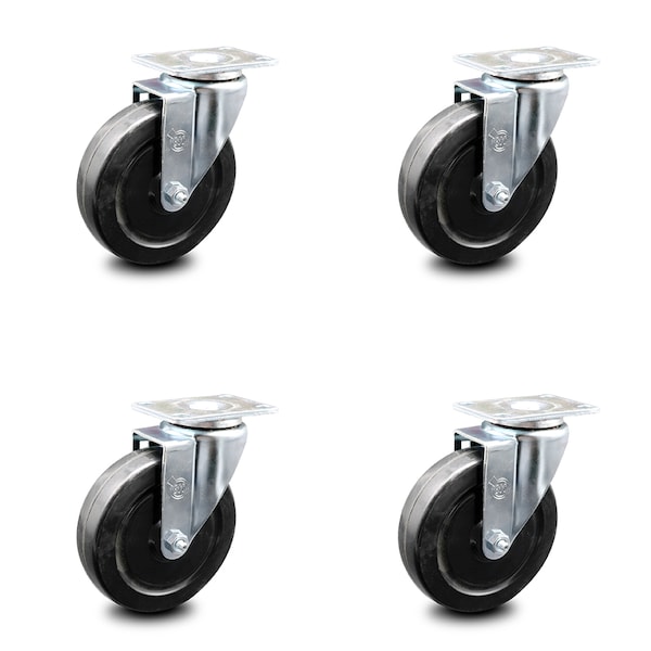 5 Inch Hard Rubber Wheel Swivel Top Plate Caster Set