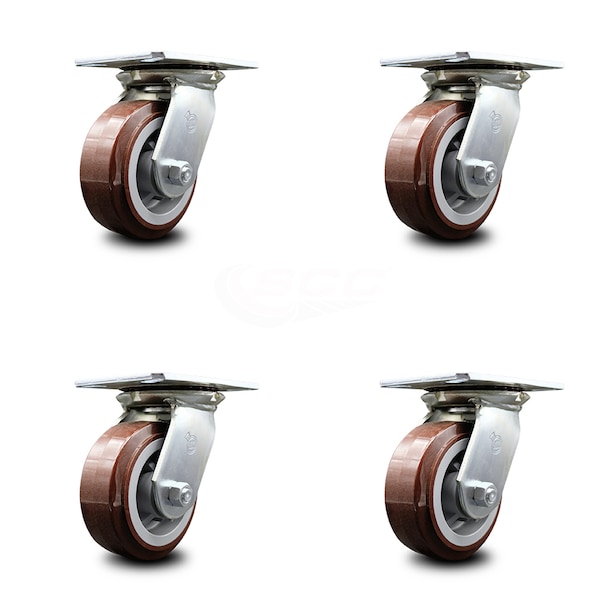 5 Inch Heavy Duty Polyurethane Caster Set with Roller Bearings SCC, 4PK