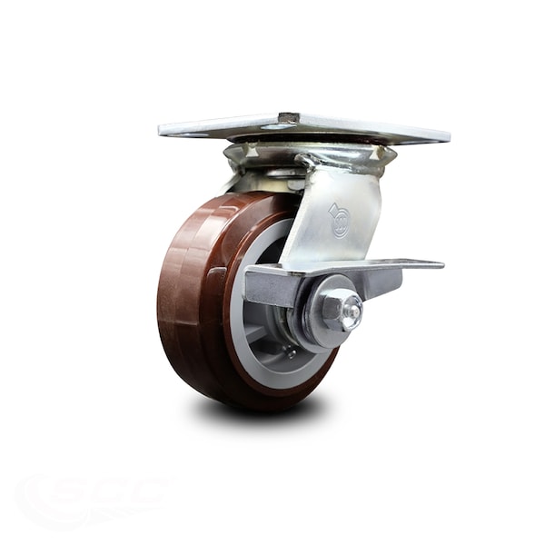 5 Inch Heavy Duty Polyurethane Caster with Roller Bearing and Brake SCC