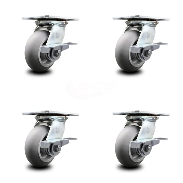 5 Inch Heavy Duty Thermoplastic Caster Set with Roller Bearings and Brakes SCC