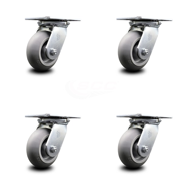 Listing is for a set of four (4) Service Caster Series #35 swivel casters with 5" diameter by 2" wide thermoplastic rubber donut tread wheels capable of supporting a total weight of 1,400 lbs. (350 lbs. per caster). When searching for a reliable and durable solution for medium and heavy duty projects, consider Service Caster’s Series 35 thermoplastic rubber donut tread on polyolefin core casters. The rounded face “donut” style soft tread is made of thermoplastic rubber that is non-marking, non-marring and provides easier mobility over standard flat tread wheels, resulting in a long lasting, high capacity wheel capable of easy rolling under heavy loads. Finely crafted with double ball bearing heat treated raceways, these versatile casters are ideal for a wide range of applications, such as dollies, platform trucks, warehouse carts and freight terminals. Or ensure a smooth and secure ride for food service carts, hotel housekeeping carts, and industrial and commercial equipment. Even drywall carts, welding carts, and wall panel carts will be ready to roll on the Series 35, keeping you moving forward.