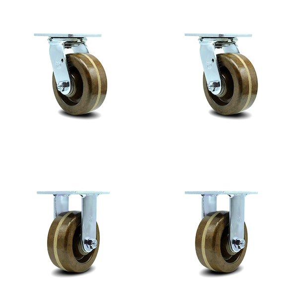 5 Inch High Temp Phenolic Caster Set with Roller Bearings 2 Swivel 2 Rigid SCC