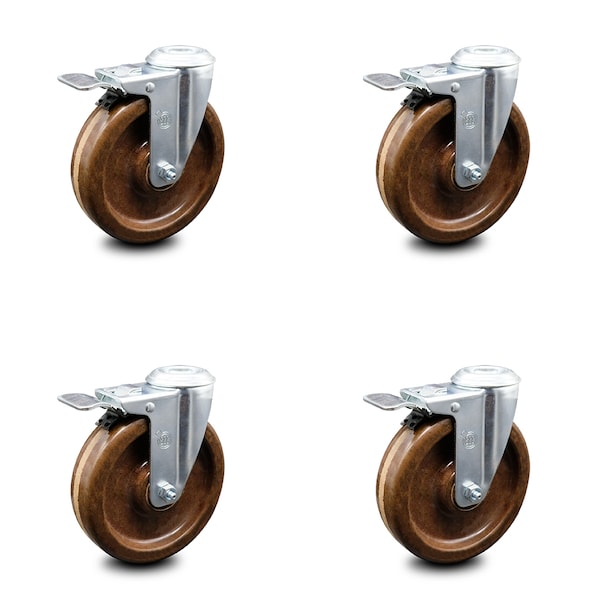 5 Inch High Temp Phenolic Swivel Bolt Hole Caster Set with Total Lock Brake SCC