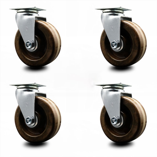 5 Inch High Temp Phenolic Wheel Swivel Caster Set with Roller Bearings SCC