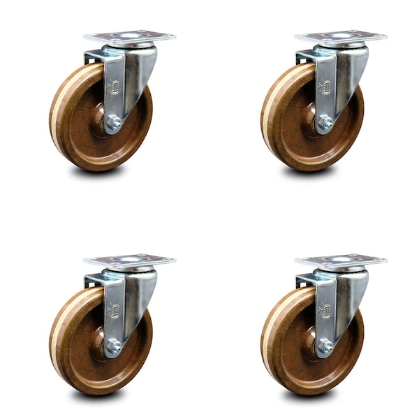 5 Inch High Temp Phenolic Wheel Swivel Top Plate Caster Set