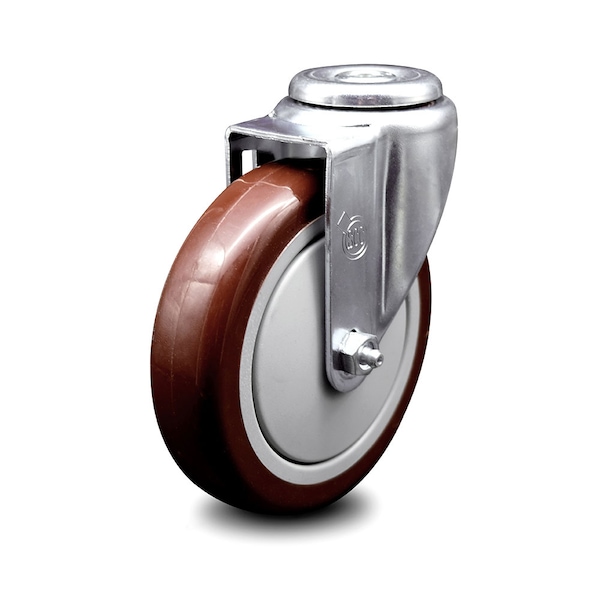 Listing is for one (1) Service Caster Series #20 swivel caster with a 5" diameter by 1-1/4" wide maroon polyurethane wheel and a bolt hole capable of supporting 300 lbs./caster.When searching for a reliable and durable solution to your caster needs, consider Service Caster’s Series 20 bolt hole polyurethane casters. The Service Caster Series #20 is ideal for light and medium duty material handling, carts, equipment, and shop projects. The bolt hole can accept a bolt or a customized stem, allowing for any type of mounting requirement. The zinc plated finish provides durability under any condition, while the non-marking, non-marring polyurethane wheels perform especially well on hard surfaces such as concrete, tile, and wood. All rolling on a finely crafted ball bearing design that will keep you moving forward. Service Caster is unsurpassed in quality, reliability, and excellent customer service. Count on us to move you forward.
