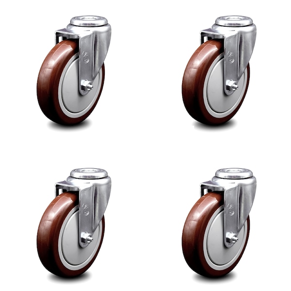 5 Inch Maroon Polyurethane Wheel Swivel Bolt Hole Caster Set
