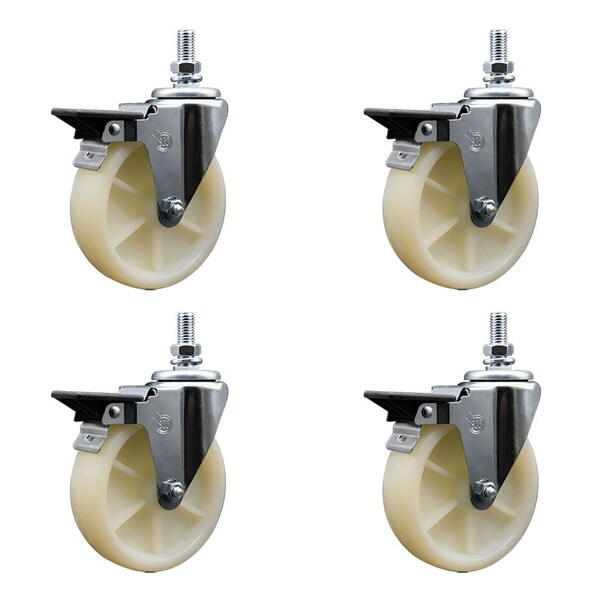 5 Inch Nylon 10 MM Threaded Stem Caster Set with Brake