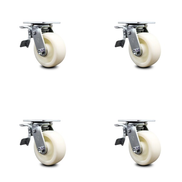 5 Inch Nylon Caster Set with Roller Bearing and Total Lock Brakes