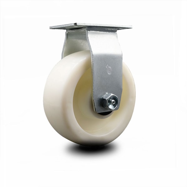Listing is for one (1) Service Caster Series #20 rigid caster with a 5" diameter by 2" wide nylon wheel and roller bearing capable of supporting 450lbs./caster. When searching for a reliable and durable heavy duty solution to your caster needs, consider Service Caster’s Series 20 nylon wheel casters.The Service Caster Series #20 is ideal for light and medium duty material handling, carts, equipment, and shop projects. The zinc plated finish provides durability under any condition and the nylon wheels provide very low rolling resistance, show a high resistance to many aggressive substances and under normal operating conditions are maintenance free. Resistant to most chemical and oils, these nylon wheels will keep you safely moving forward. Service Caster is unsurpassed in quality, reliability, and excellent customer service. Count on us to move you forward.