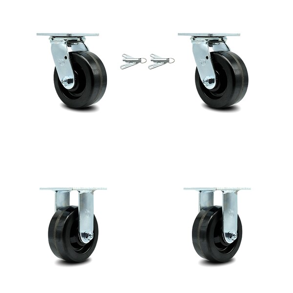 5 Inch Phenolic Caster Set with Ball Bearings 2 Swivel Lock 2 Rigid SCC