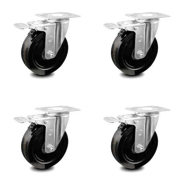 5 Inch Phenolic Swivel Top Plate Caster Set with Total Lock Brake