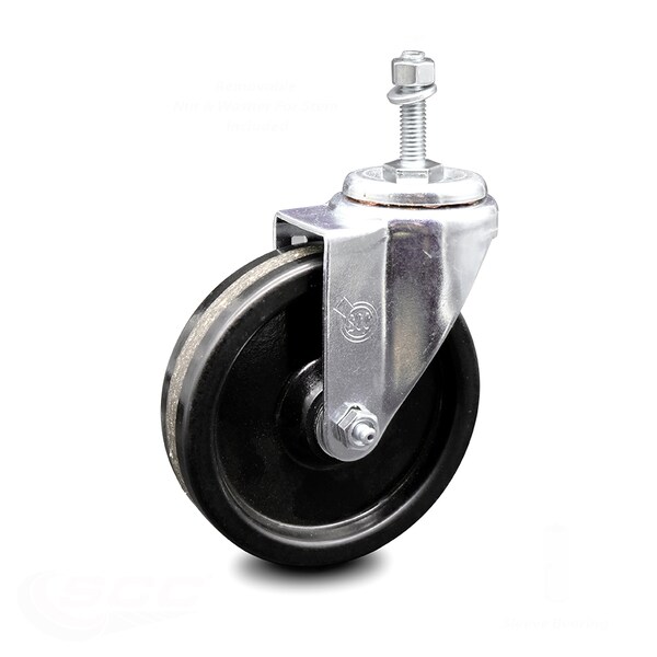 5 Inch Phenolic Wheel Swivel 3/8 Inch Threaded Stem Caster