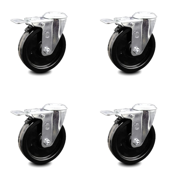 5 Inch Phenolic Wheel Swivel Bolt Hole Caster Set with Total Lock Brake SCC