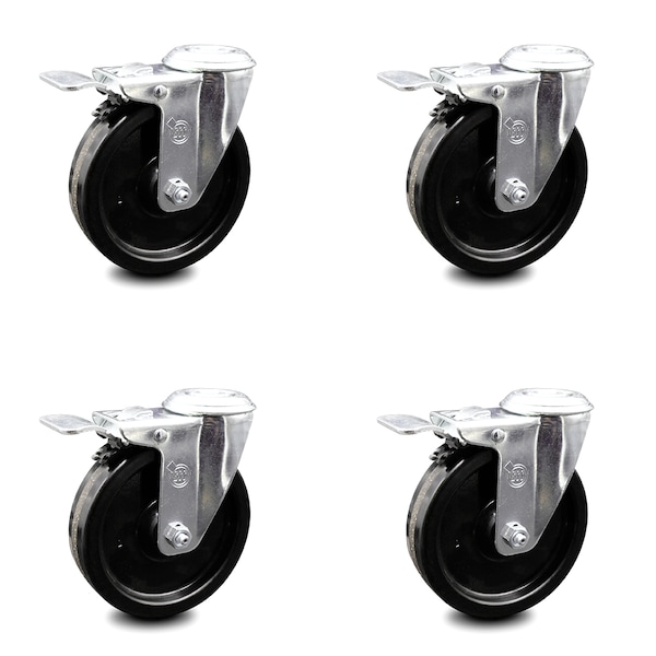 5 Inch Phenolic Wheel Swivel Bolt Hole Caster Set with Total Lock Brake SCC