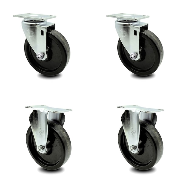 5 Inch Phenolic Wheel Swivel Top Plate Caster Set with 2 Rigid