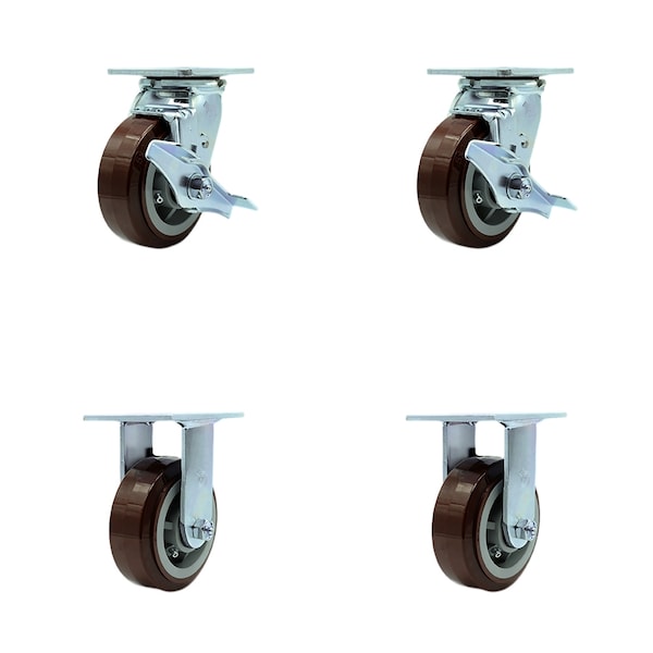 5 Inch Polyurethane Caster Set with Roller Bearings 2 Brake 2 Rigid SCC