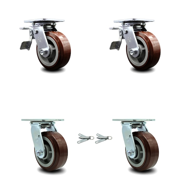 5 Inch Polyurethane Caster Set with Roller Bearings 2 Brakes 2 Swivel Locks SCC