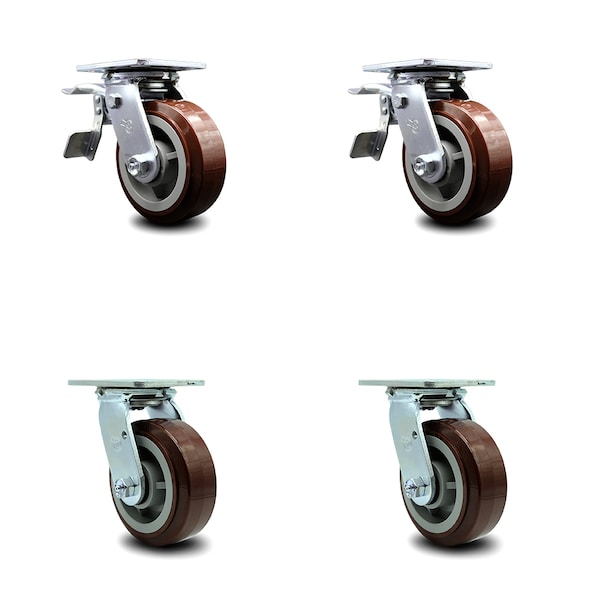 5 Inch Polyurethane Swivel Caster Set with Roller Bearing 2 Total Lock Brake SCC