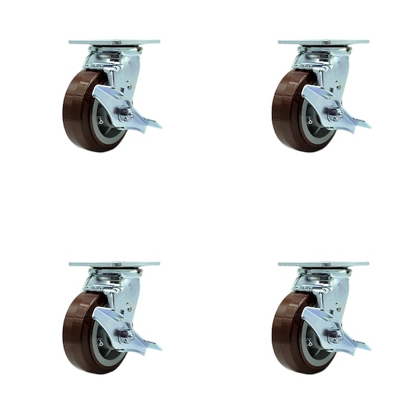 5 Inch Polyurethane Swivel Caster Set with Roller Bearing and Brake SCC
