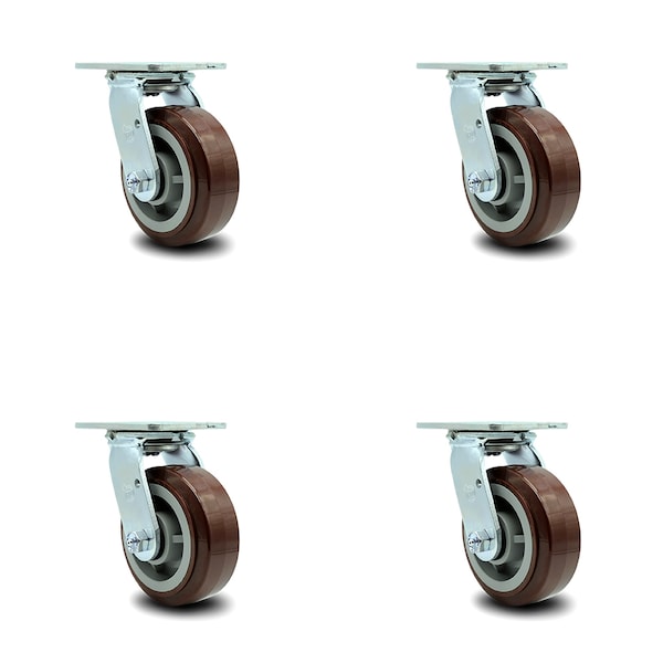 5 Inch Polyurethane Swivel Caster Set with Roller Bearing and Swivel Lock SCC