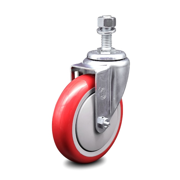 5 Inch Red Polyurethane Wheel Swivel 12mm Threaded Stem Caster SCC