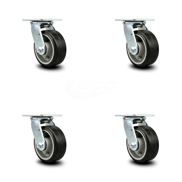 5 Inch Rubber on Aluminum Wheel Swivel Caster Set with Roller Bearings SCC