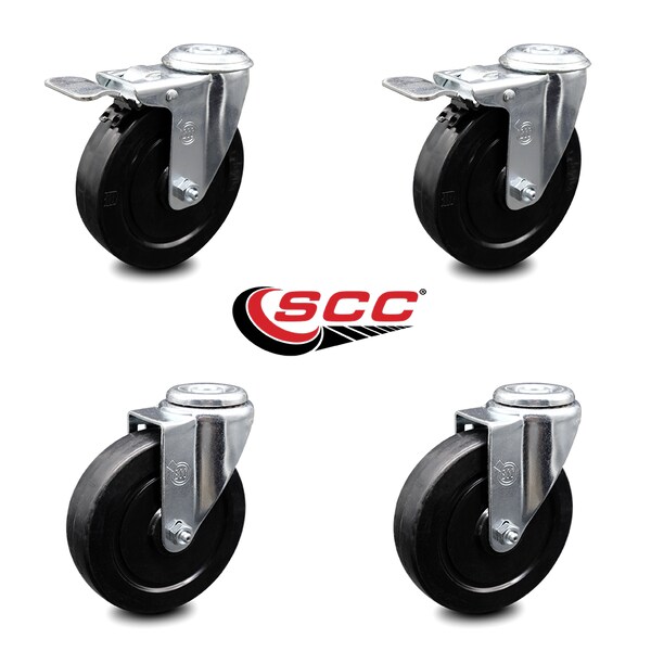 5 Inch Soft Rubber Swivel Bolt Hole Caster Set with 2 Total Lock Brake SCC