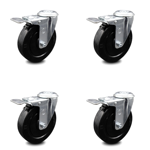 5 Inch Soft Rubber Swivel Bolt Hole Caster Set with Total Lock Brake SCC