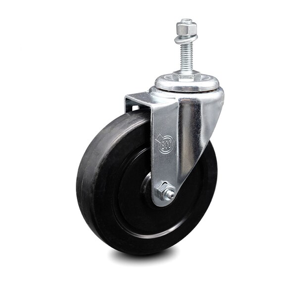 5 Inch Soft Rubber Wheel Swivel 10mm Threaded Stem Caster