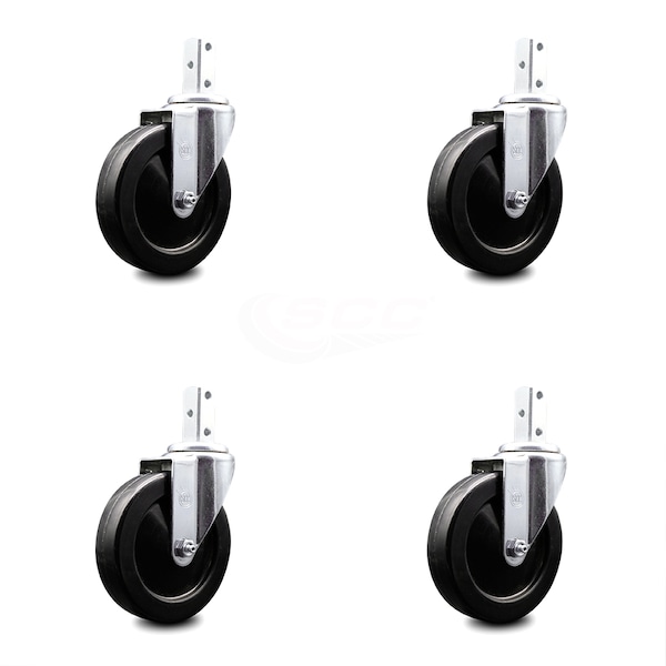 5 Inch Soft Rubber Wheel Swivel 7/8 Inch Square Stem Caster Set