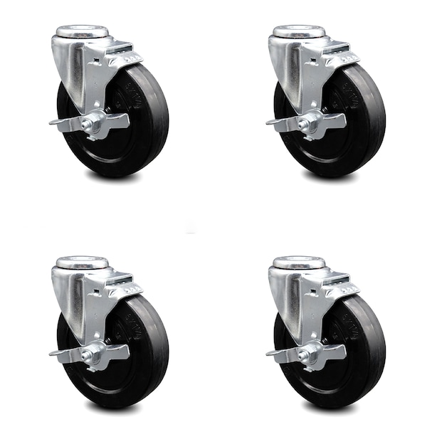 5 Inch Soft Rubber Wheel Swivel Bolt Hole Caster Set with Brake