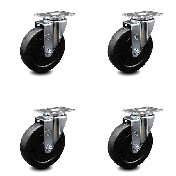 5 Inch Soft Rubber Wheel Swivel Top Plate Caster Set