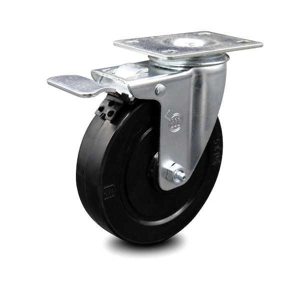5 Inch Soft Rubber Wheel Swivel Top Plate Caster with Total Lock Brake SCC