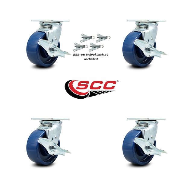 5 Inch Solid Polyurethane Caster Set with Ball Bearing and Brake/Swivel Lock SCC