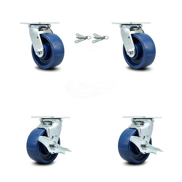 Listing is for a set of four (4) Service Caster Series #30 casters, two (2) swivel casters with bolt on swivel locks and two (2) swivel casters with side lock brakes, with 5" diameter by 2" wide solid polyurethane wheel and maintenance free precision ball wheel bearings capable of supporting a total weight of 4,000 lbs. (1,000 lbs./caster). When searching for a reliable and durable solution to your caster needs, consider Service Caster's Series 30 solid polyurethane wheel casters. The Service Caster Series #30 features a non-marking, non-marring polyurethane wheel. Molded as one solid piece, this wheel is free from debonding, and will not flatspot, as can occur with comparable polyurethane wheels, ensuring a smooth and solid roll over long periods of time. These versatile casters are ideal for a wide range of applications, such as dollies, platform trucks, warehouse carts and freight terminals. Or ensure a secure ride for food service carts, hotel housekeeping carts, and industrial and commercial equipment. Even drywall carts, welding carts, and wall panel carts will be ready to roll on the Series 30, keeping you moving forward. Service Caster is unsurpassed in quality, reliability, and excellent customer service. Count on us to move you forward.
