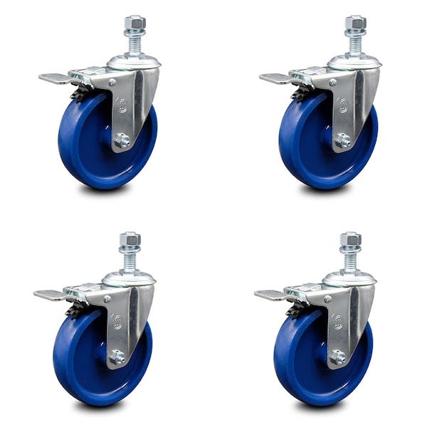 5 Inch Solid Polyurethane Swivel 3/8 Inch Stem Caster Set with Total Lock Brake