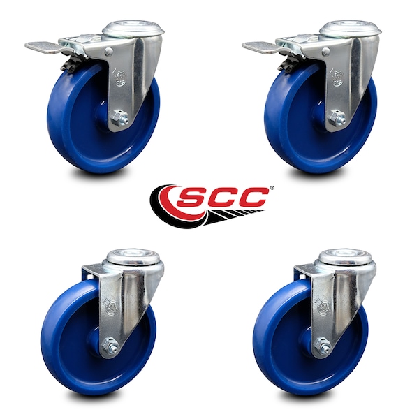 5 Inch Solid Polyurethane Swivel Bolt Hole Caster Set with 2 Total Lock Brake