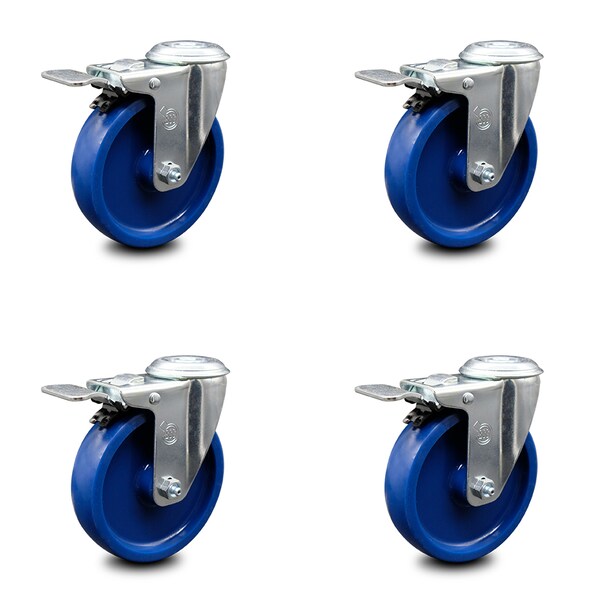 5 Inch Solid Polyurethane Swivel Bolt Hole Caster Set with Total Lock Brake SCC