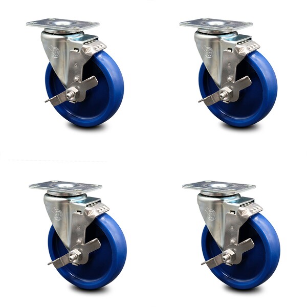 5 Inch Solid Polyurethane Wheel Swivel Top Plate Caster Set with Brake SCC