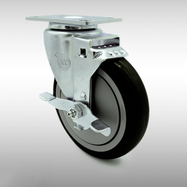 5 Inch SS Black Polyurethane Swivel Top Plate Caster with Brake