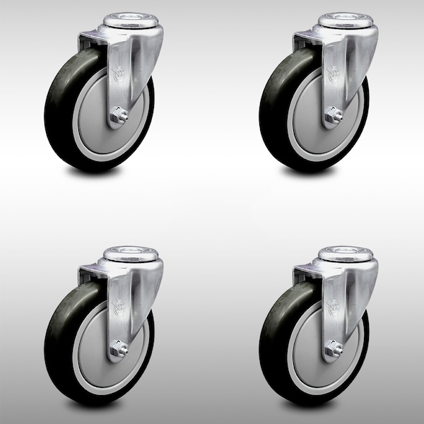 5 Inch SS Black Polyurethane Wheel Swivel Bolt Hole Caster Set