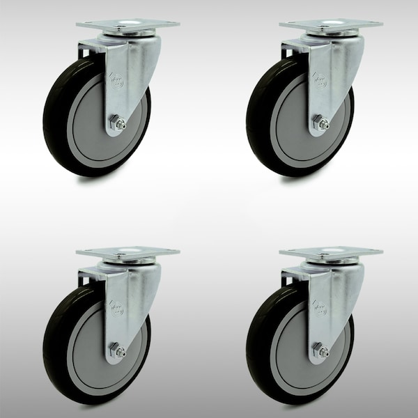 5 Inch SS Black Polyurethane Wheel Swivel Top Plate Caster Set