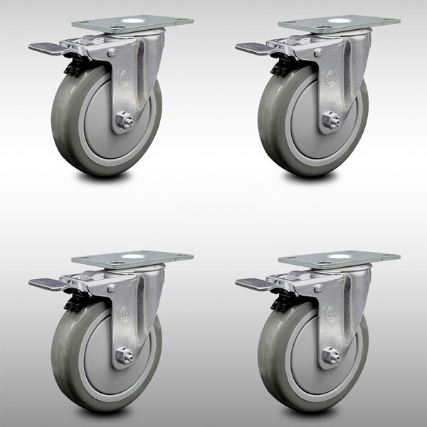 5 Inch SS Gray Polyurethane Top Plate Caster Set Total Lock Brake SCC